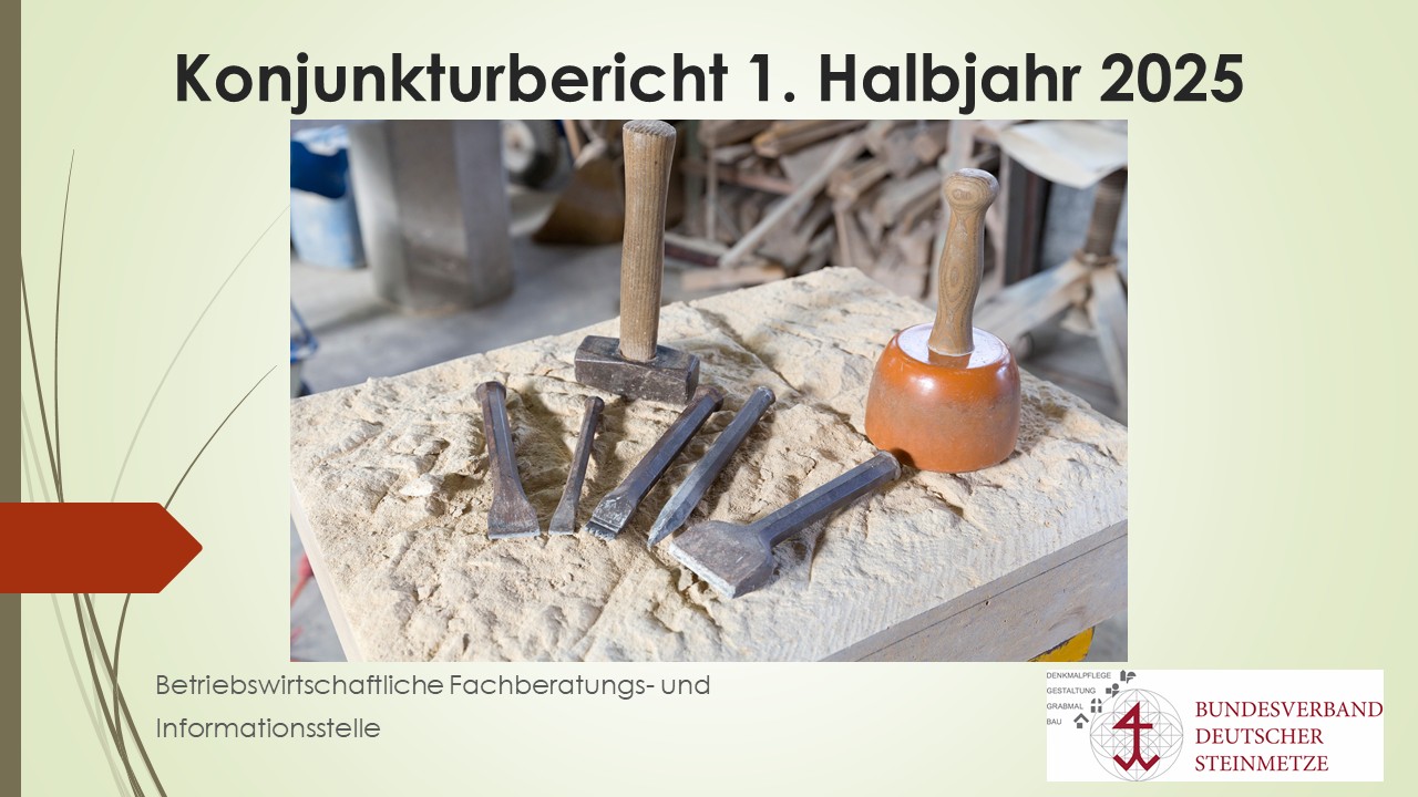 Der Bundesverband Deutscher Steinmetze (BIV) erhebt seit 1997 zweimal jährlich im Frühjahr und im Herbst eine Umfrage zur konjunkturellen Stimmung und Entwicklung im Steinmetzhandwerk. Das Abbild der Konjunkturstimmungslage im Steinmetzhandwerk ist so dicht wie möglich an der Realität der Betriebe und spiegelt mit leichter Verzögerung die Ist-Situation innerhalb der Branche wider. Der BIV stellt diese Ergebnisse regelmäßig der Öffentlichkeit, insbesondere der Fachpresse und den politischen Entscheidungsträgern zur Verfügung. Im zweiten Halbjahr 2024 zeichnet sich in der deutschen Steinmetzbranche eine leicht verschlechterte konjunkturelle Lage ab.